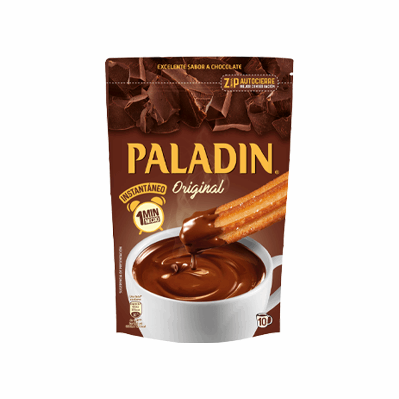 The Chocolate Dip for Churros Paladin is the most classic chocolate for churros in Spain, where it is called “Paladin a la taza”. This chocolate powder combined with milk creates a spectacular chocolate sauce, ideal for dipping crispy churros, but also to use as a chocolate coating for your cakes, muffins, or any sweet treats you bake at home.