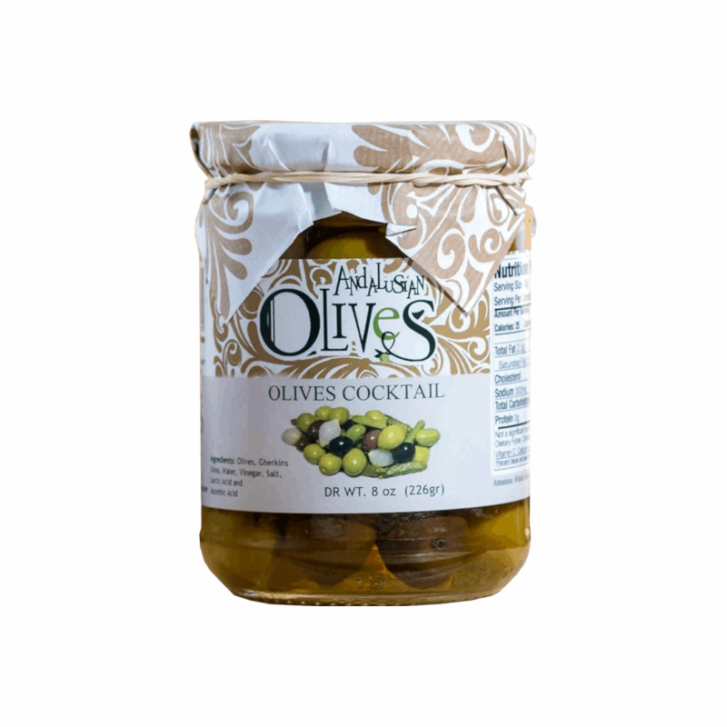 This Olives Cocktail is a mix of green olives, black olives, gherkins and onions. A delicious combination of some of the best pickles in Andalusia.