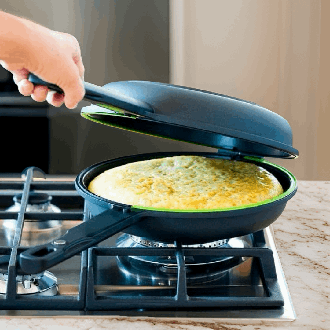 Introducing our Double Spanish Omelet Pan – the ingenious solution for perfecting the classic Spanish omelet, or "tortilla española," without the risk of spills. Crafted with precision, this innovative pan is designed to simplify the process of flipping your tortilla with confidence.