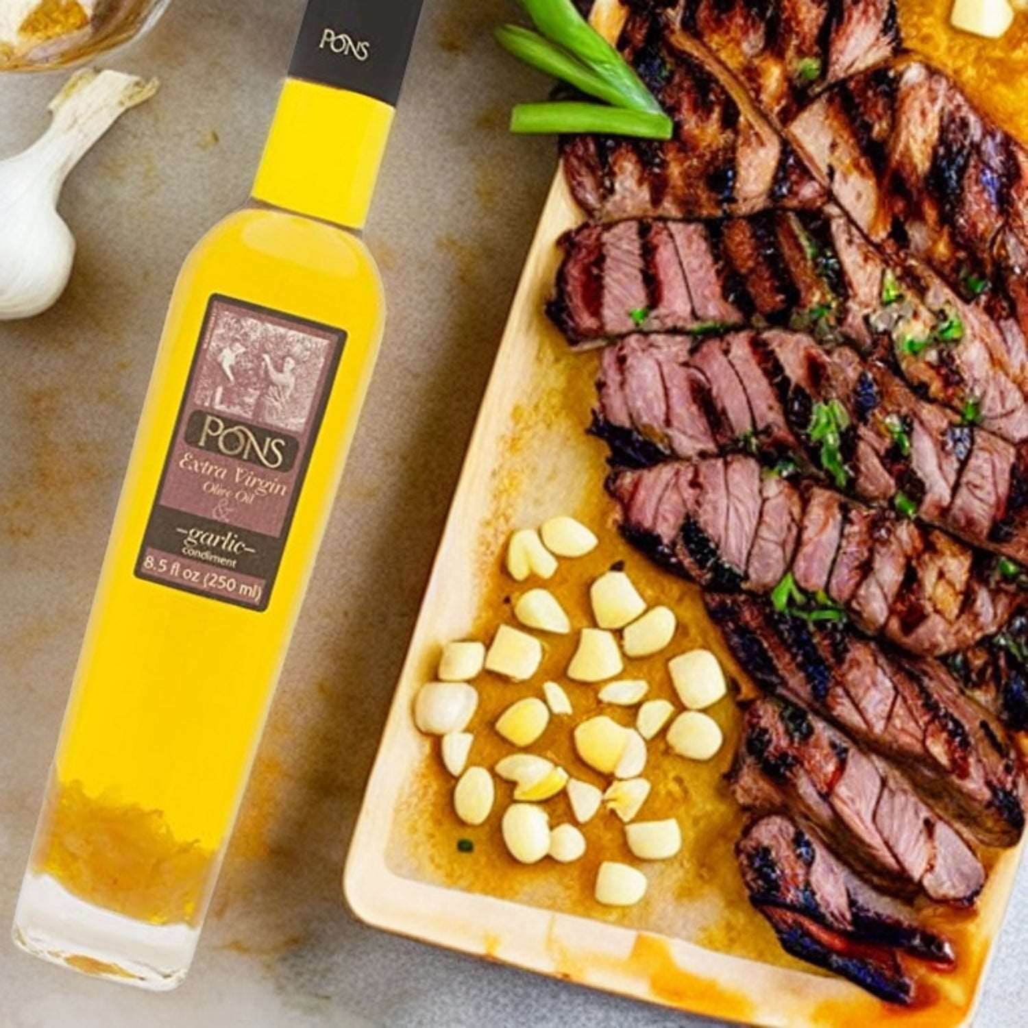 The extra virgin olive oil & garlic by Pons is an aromatic oil exclusively made with late-harvest Arbequina Olives and infused with real garlic cloves. The result is an elegant Spanish EVOO, with a mild an unique garlic flavor, very versatile and perfect for a wide variety of dishes.